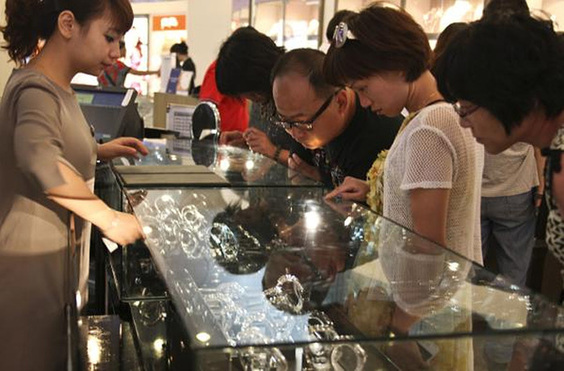据了解,该邮轮的航程原本应为上海、日本福冈加韩国釜山,因韩国爆发中东呼吸综合症疫情,不得不改变行程。载着4000多名中国游客的邮轮,停靠在日本鸟取县港口,游客落船,到鸟取县西部的日吉津村观光。图为中国游客在日本渔村的商店中选购商品。