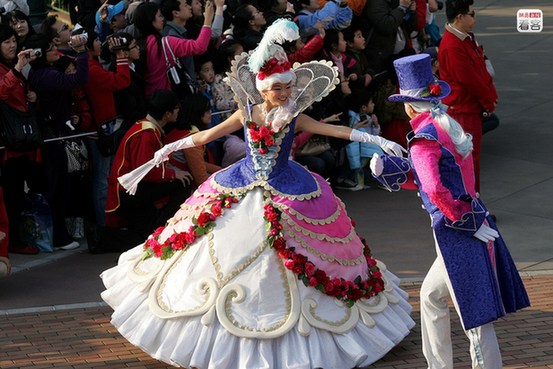 2004年11月22日,香港财政司长Henry Tang与香港迪士尼团队总经理Don Robinson一同宣布:香港迪士尼将于2005年9月12日正式开门迎客。这一日期正是由风水先生精心挑选的“吉日”。图为2011年1月21日,迪士尼乐园内在进行表演。Dale de la Rey/Bloomberg via Getty Images