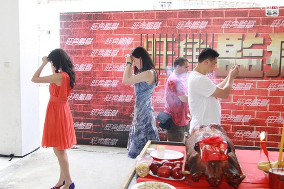 香港娱乐圈的迷信氛围更为浓重,类似明星养小鬼、找大师的八卦很多都街知巷闻。图为2009年7月30日,电影《旺角监狱》举行开机仪式现场。
