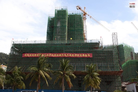 近年,香港“风水热潮”已蔓延至内地。图为2013年1月5日,海南三亚一栋在建大型楼盘悬挂着“热烈欢迎香港著名风水学大师宋韶光先生来我项目观摩指导”的横幅,十分惹眼。CFP