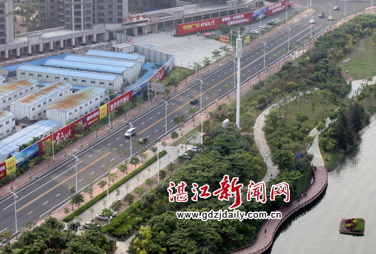 据了解,海湾路长2.2公里,位于赤坎滨湖公园西岸,是通往本届省运会滨湖划艇赛场和训练基地的主要道路。为迎接省运会,我市于6月底开始对海湾路实施维修翻新,计划在7月15日前完成。工程施工单位和人员克服了时间紧、任务重等困难,全力以赴,争分夺秒,加班加点,终于提前完成了任务。
