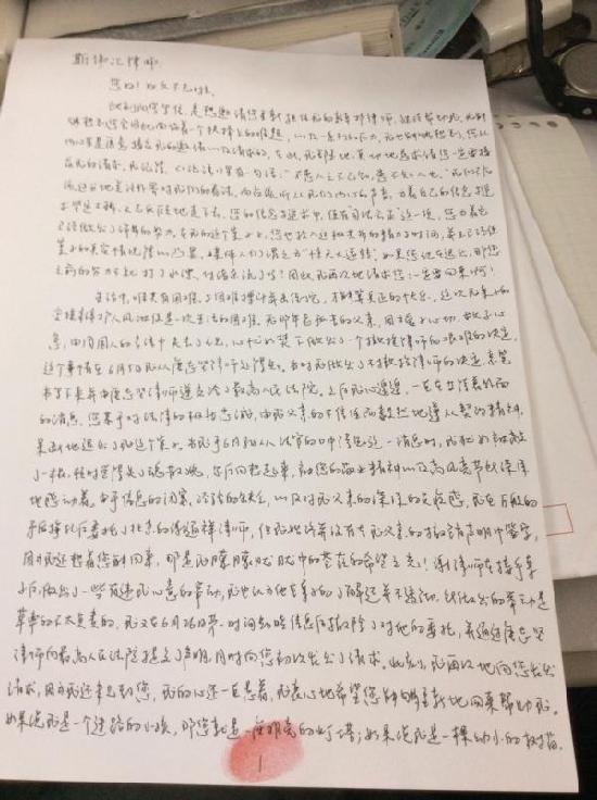 此刻向您写信,是想邀请您重新担任我的辩护律师,继续帮助我。我能够想到您会因此面临着一个抉择上的难题,以及一系列的压力,我也能够想到,您从内心是愿意接受我的邀请以及请求的。在此,我郑重地、真切地恳求,请您一定要接受我的请求。我记得,《论语》里有一句话:“不患人之不己知,患不知人也。”我们不应该过分地关注外界对我们的看法,而应该听从我们内心的声音,为着自己的信念与追求坚定不移、义无反顾地走下去。您的信念与追求中,便有“司法公正”这一项,您为着它已经做出了许多的努力。在我的这个案子上,您也投入过极其多的精力与时间,并且已经使案子的真实情况得以凸显,媒体人们谓之为“惊天大逆转”。如果您现在退出,那您之前的努力不就打了水漂,付诸东流了吗?因此,我再次地请求您:一定要回来啊!