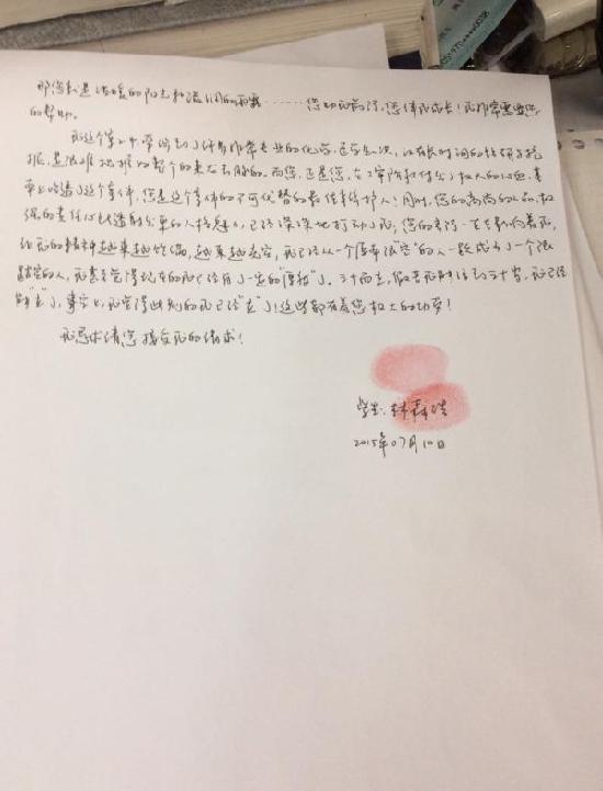 7月21日,澎湃新闻(www.thepaper.cn)记者获得两封林森浩的亲笔信,一封信写给父亲林尊耀,另一封信写给律师斯伟江。