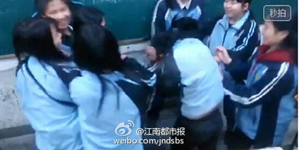 7月27日,江西九江一段修水县多名女生殴打一名同学的视频在网上流传。