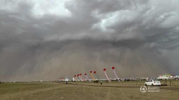 2015年7月28日下午17时,内蒙古锡林郭勒盟苏尼特右旗额仁淖尔苏木遭沙尘暴袭击,当时苏尼特右旗正在举办第十三届那达慕大会,现场聚集了2万多名观众。沙尘暴由远而近,天空变得昏暗,近百米高的沙墙接天连地,仅十多分钟就到达了那达慕会场。
