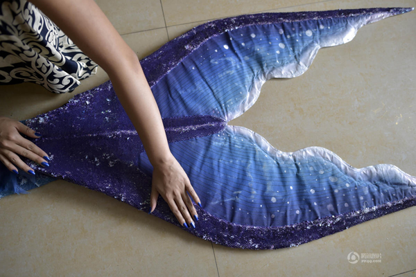 重庆美女缝制人鱼服 编织儿时“人鱼梦”