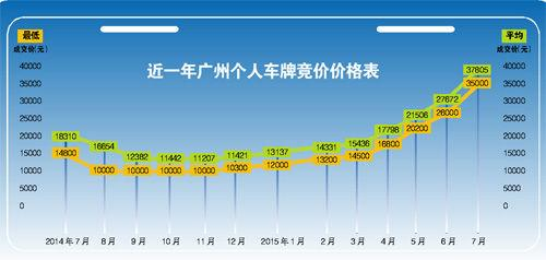 7月粤A牌最低价首现3字头 个人牌最低35000元均价37805元