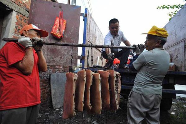 佛山烧腊黑坊凌晨3点开工 臭猪肉躺一地