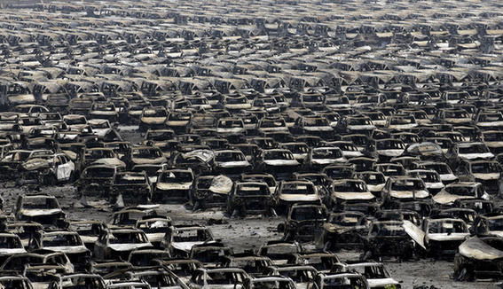 天津爆炸烧毁2748辆进口车 部分车体熔化