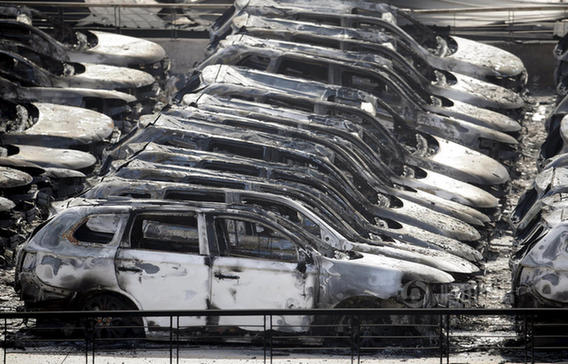 天津爆炸烧毁2748辆进口车 部分车体熔化