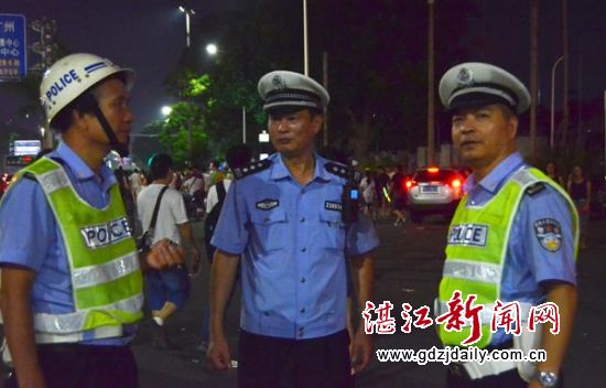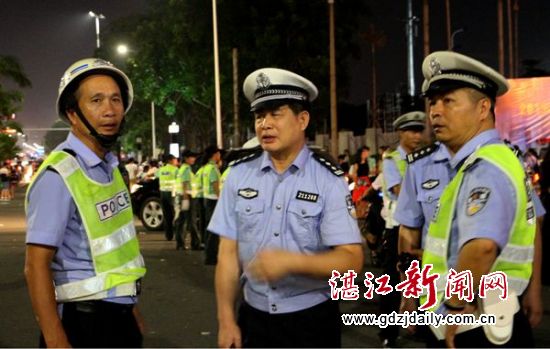 交警支队杨东光副支队长与赤坎大队林庚大队长、李志翔副大队长靠前掌握交通动态。