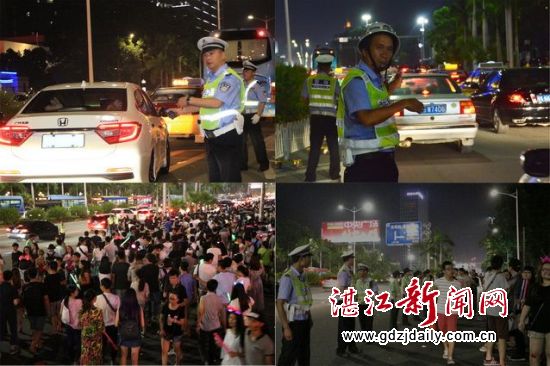 湛江新闻网讯:8月22日晚,陈奕迅大型演唱会在市体育中心隆重举行,为了做好演唱会的交通安全组织工作,交警赤坎大队进行了精心组织和周密部署,全体民警和交通协管员发挥了不怕苦、不怕累,长时间连续作战的精神,确保了体育中心及周边的停车秩序良好,圆满完成了演唱会的交通安全组织工作。