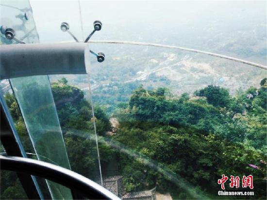 8月25日,湖北建始县黄鹤桥峰林景区,游客乘坐观光电梯。该观光电梯通高88米,耸立在两座山体狭缝绝壁之间。梯体垂直、透明,游客乘坐时无限风景可尽收眼底。该电梯始建于2011年6月,2013年建成,总投资近千万元,是鄂西地区唯一一部垂直观光电梯。