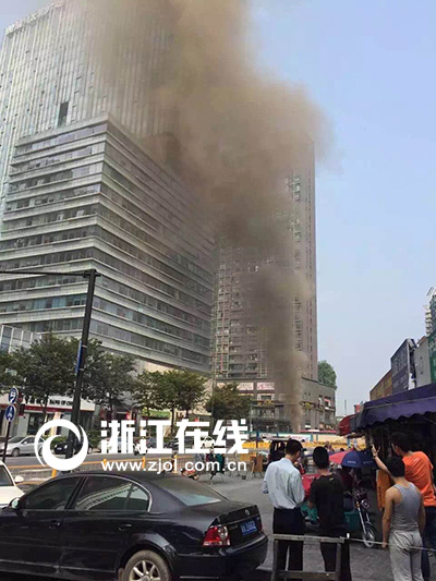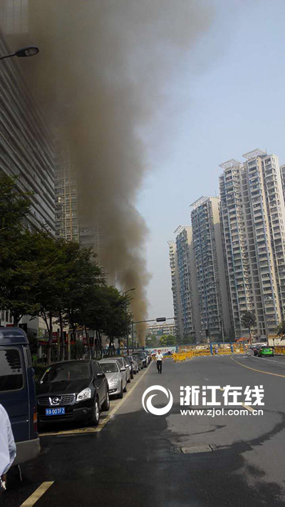浙江在线杭州8月28日讯(浙江在线记者/李鹏 首席编辑/赵洁)今天上午10点左右,有网友向浙江在线官方微信爆料平台报料称,杭州钱江路飞云江路口突然冒出浓烟,连旁边大楼里的人都紧急疏散了。