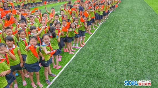 成都小学生摆"70"造型庆抗战胜利70周年(组图)
