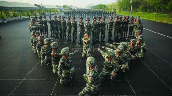 “李涵,嫁给他吧!”40名刚刚受阅过的战士,围成心形,手指向中间一位手捧鲜花小伙,陪他一起向远在甘肃的女友求婚。昨天中午,阅兵圆满结束之后,在“雁门关伏击战英雄连”英模部队方队营地,上演了这浪漫且温馨的一幕。