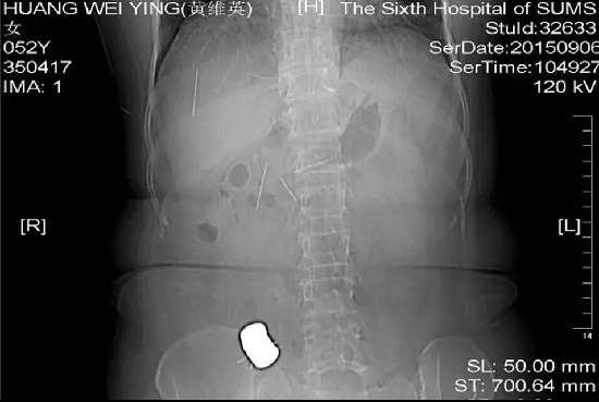 一开始,黄姨的子女以为她是阑尾炎,马上将她送到当地医院,黄姨在急诊拍了x光片,而X光片的结果就吓了大家一跳,因为黄姨的肚子里面,有好多根针,还导致了多发性肠穿孔。