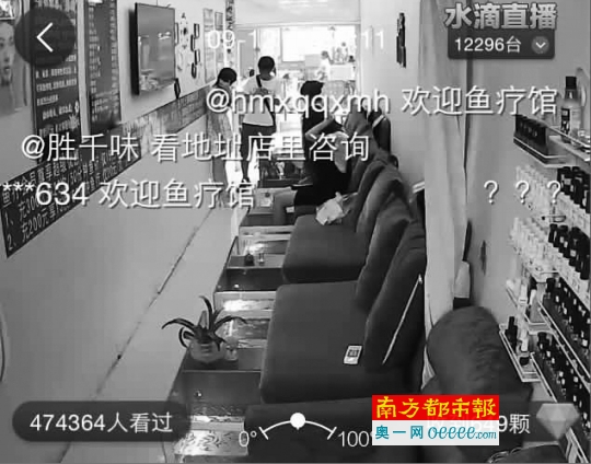 记者来到广州白云区一家鱼疗馆,在360摄像机水滴直播的页面上也看到了记者的画面。