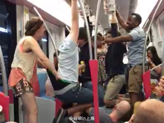 洋学生把上海地铁当"夜场" 6号线末班车上演"疯狂秀"