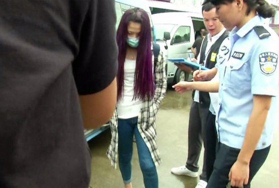 专案组通过走访调查、信息研判,摸清了两个犯罪团伙分别以刘某、刘某涛为首,下有2至3名骨干成员,每个骨干成员各带多名卖淫女的基本组织架构,并掌握了卖淫女每次持第三国签证和护照过境澳门,利用过境澳门期间通过路边招嫖、派卡片等方式进行卖淫活动等情况。图为犯罪嫌疑人移交现场,女子均带口罩。