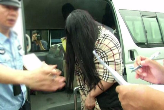 9月21日,澳门警方将涉案人员28人遣返移交珠海市公安机关处理(另3人由澳门警方处理)。图为犯罪嫌疑人移交现场,女子均带口罩。