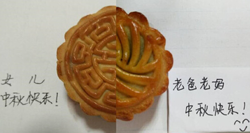 没能回家和父母团聚的扬州大学陈书林同学昨天在微博上晒出了一组跨越时空的“团圆饭”照片,以别样的方式与父母“团聚”。除了两张“半只月饼”的照片拼接外,陈书林还晒了一些菜肴的“拼接照”,都是陈书林在学校里点的菜,而这些菜大都是以前在家母亲经常烧给她吃的。两张照片拼在一起,一半是家的味道,一半是女儿的思念。