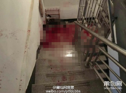 楼梯上血迹斑斑。