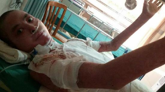 为了筹集治疗费用,李长梅在网络上求助。汪夕勇老家的村民们也开始捐款,内江当地红十字会也发起募捐,东兴区田家镇政府也组织捐款。“此外,我们还协调电力部门,先垫付了一部分钱。”田家镇政府相关负责人介绍,在组织捐款的同时,司法部门还提供了法律援助,帮助汪夕勇一家提起诉讼。待汪夕勇出院后,将通过司法途径判定此次事故的责任,以争取相应的赔偿金。“好心人捐了一些,这些我都一笔一笔记下来了,今后逐一感谢。”李长梅说,政府部门也帮忙协调,再加上借来的钱,丈夫完成了前3次植皮手术。“为了节约费用,前胸还用的最便宜的猪皮进行植皮手术。”
