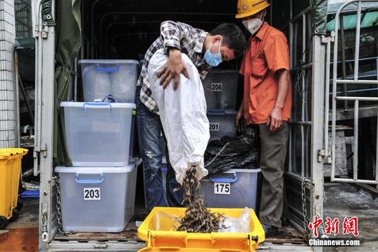10月11日,工作人员将罚没海马干进行无害化销毁处理。