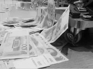 事发番禺区光明北路易发商业中心内一服装店,昨日下午记者赶到现场时,被撒的百元大钞已有店员捡起捆好。回想起上午遇到的事情,店员们百思不得其解。“真的以为是在拍电影。”据店员小林回忆,昨日上午11时许,店面刚刚开门营业不久,并没有什么顾客,只一瞬间,一名中年女子骑着一辆女装摩托车停在店铺前,径直冲入店内第二间试衣间,将里面的一只鞋拿出,然后又顺手将旁边衣架上的毛毛外衬衣扯下来,回到摩托车上后,女子用羽绒服将毛毛外衬衣包裹起来,作势开车离开。