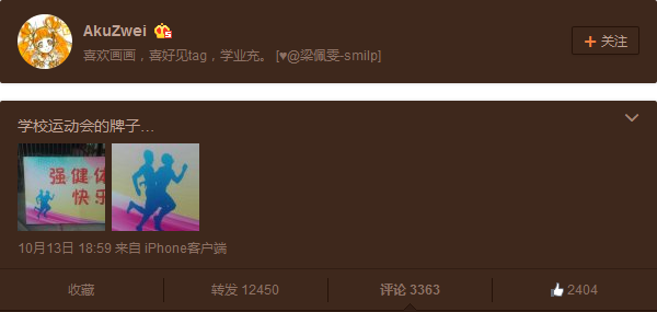 @AkuZwei 发微博晒自家学校运动会的宣传牌