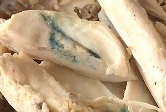 江门:女子切开煮熟鸡肉后发现大量绿斑