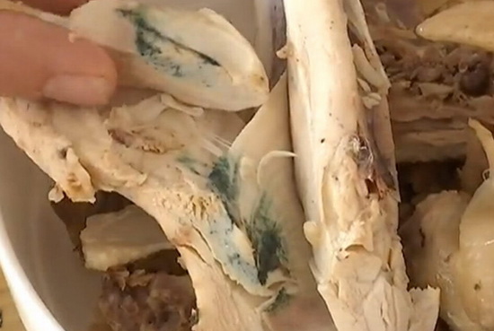 江门市动物疫病预防控制中心高级兽医师冯开容说:“按照我们初步分析,刚刚看到的那块鸡肉,应该是鸡打了疫苗之后,有一个吸收和消化的过程,所以就在那个位置形成色素。”