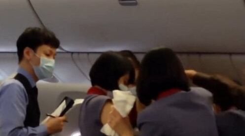 华航一名前空姐在脸书踢爆整件事,指简女7日深夜在桃园机场登机时都使用障眼法,她上机还未起飞前,就出现阵痛,空服员发现妇人怀有身孕,妇人却坚称是胀气,起飞后也开始阵痛不断。前空姐在脸书指摘说,简女前2胎皆剖腹都是美国籍,羊水破时须自然产,有妈妈经验组员教她如何用力,机上一名女医师闻讯协助,必须知道孕妇怀胎几周,“结果居然已经36周!”“她还坚持要晚一些,不肯躺下来生,当时胎头已顶到子宫阴道口时,她还把孩子塞回去”,“而且不肯给医生剪脐带,还一边问美国领空到了没。”但对于前空姐脸书说法,华航不证实也不否认。图为机舱内高空产子现场。