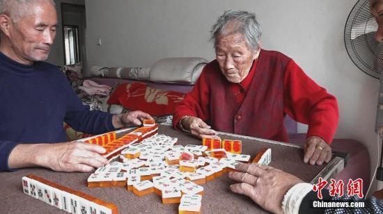 资料图片:郑州103岁老人的麻将生活 韩章云 摄
