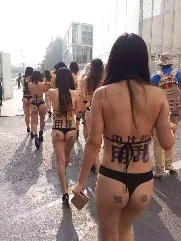 清凉装女模裸臀游街求扫码 商家营销再出怪招