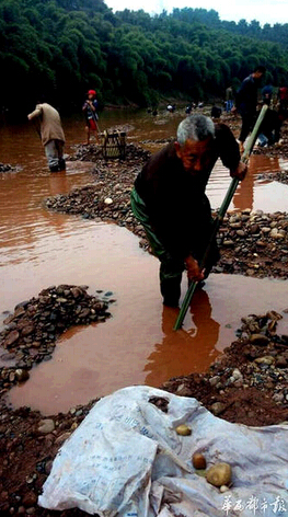 知道后来有人来收购,杨建100块钱1斤,卖了40多斤。6月份,收石人又主动联系到他,杨建开价“300元每斤”,对方同意,但因杨所挖的石头此时并不多,挑不出多少有价值的石头,收石人和杨协商后一致决定暂时不卖。