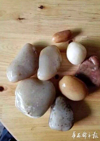 杨建说,自己曾将挖到的石头寄与专业人士鉴定,对方回应称这是属于玉的一种。于是,杨建为其命名为“玉石”。杨建开始将这个秘密告诉镇上其他人,渐渐地,知道的人越来越多,尤其是近一周来,河道里几个地点挖“玉石”的人加起来有上千人。
