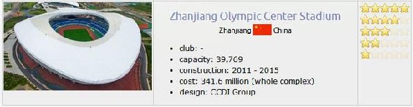 湛江奥体中心候选stadiumDB2015年全球最佳球场