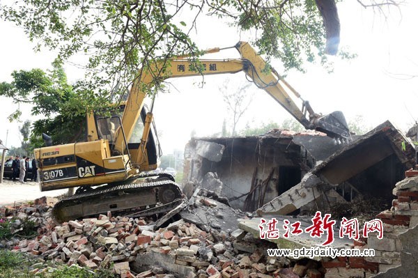 1日,南米村整治现场,钩机正开展清障工作。吴文康 摄