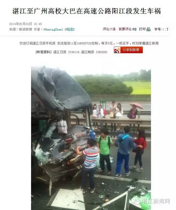 虽然事发在台湾,但近年来,湛江发生的大巴事故也并不少见↓