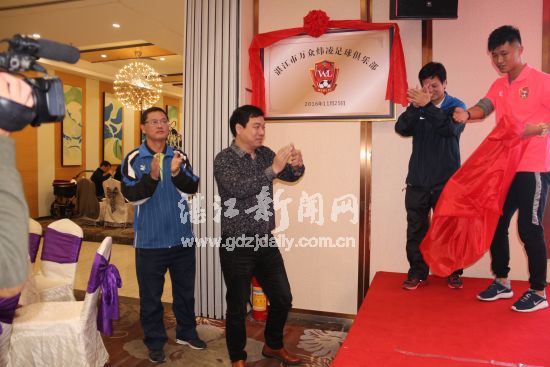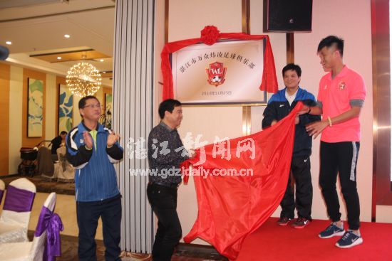 市体育局朱陆局长、市足球协会主席陈曙峰等领导为湛江万众炜凌足球俱乐部揭牌。