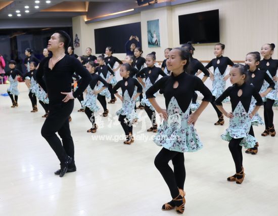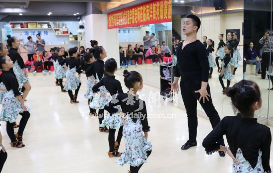 湛江新闻网讯:11月29日下午湛江市海洋舞苑专业拉丁舞培训中心为了迎接“体彩大乐透杯”2016北部湾城市(湛江)第四届体育舞蹈公开赛暨湛江市第六届体育舞蹈(国标舞)比赛,特意邀请本次大赛表演嘉宾荣获2015年英国63届世界青少年锦标赛14岁组拉丁舞亚军的李庭辉/张茵茵的老师温宇霆先生来给小选手们做赛前指导。
