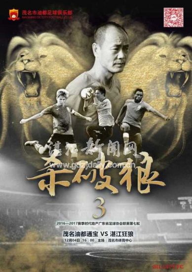湛江新闻网讯:11月30日,笔者从市足协获悉,2016-2017广东省足球协会联赛第七轮赛事在本周末进行,湛江狂狼客场对阵主场茂名油都通宝队,上演粤西德比大战将于12月4日下午4:00进行,也是西区积分头名队伍的关键一战。