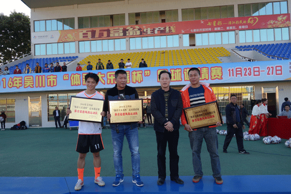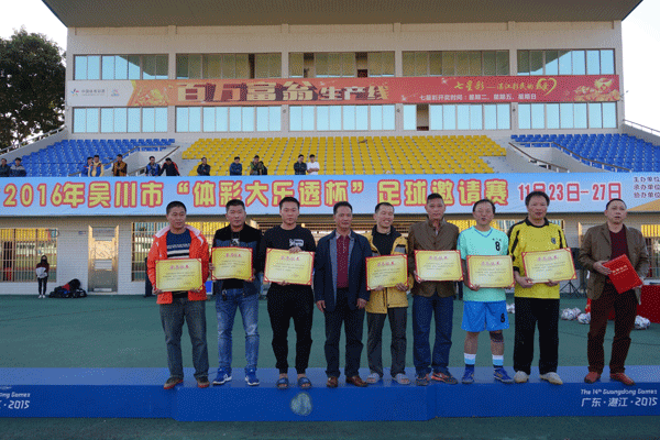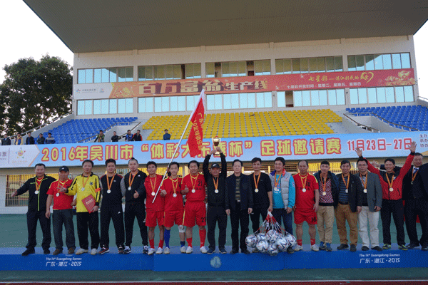湛江新闻网讯:经过5天分小组赛和两个小组前二名出线交叉淘汰赛两个阶段的激烈争夺,有吴川市910足球俱乐部等8支基层足球队伍共150名运动员参加角逐的2016年吴川市足球邀请赛,于11月27日在吴川市江心岛体育场圆满闭幕。