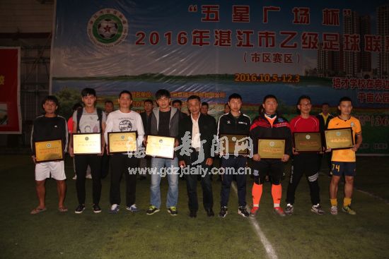 湛江新闻网讯:12月3日晚10:00,由湛江市体育局指导,湛江市足球运动协会主办,霞山区足球协会、湛江市创兴足球俱乐部承办的2016年湛江市足球协会(市区赛区)乙级足球联赛经历近两个月的比拼圆满收官,在决赛中,恒辉足球队以2:1战胜荣兴江南世家队获得冠军,恒辉足球队等8支队伍获得升甲级队伍的球队。叶健以踢进13球的战绩获得最佳射手。