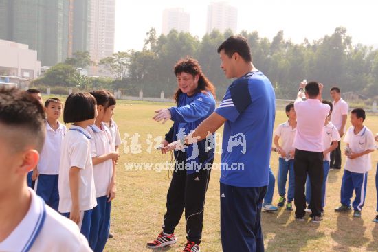 亚足联教练员讲师,国家校园足球教练员讲师李勇,我国著名足球运动员广东省校园足球指导员讲师麦广梁在向学生现场讲解足球基本知识。