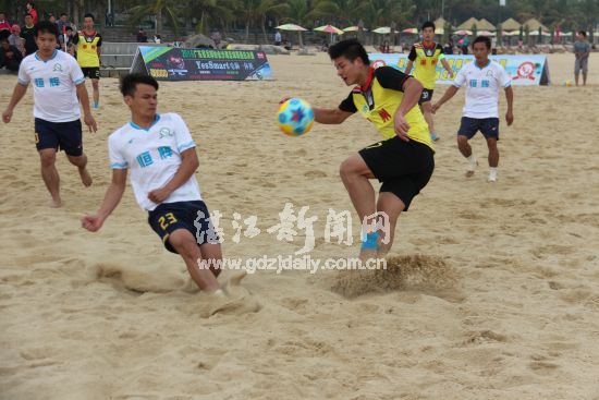 湛江新闻网讯:12月11日,由广东省足球协会主办的2016年广东省足球协会沙滩足球联赛总决赛在赤坎区金沙湾浴场海滩收官,在决赛中,我市万众炜凌足球队点球之战不及惠州市足协中民筑友队获得亚军,我市另一支球队恒辉足球队也不敌潮州市恩祈时装队获得第四名,这也是湛江首次承办省级沙滩足球联赛,湛江市足球队取得的最好成绩。