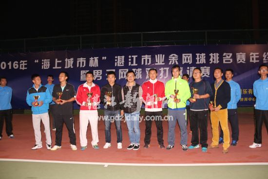 湛江新闻网讯:12月18日 晚上6:30,由湛江市网球协会主办,湛蓝网球俱乐部承办的 2016年“海上城市杯”湛江市业余网球排名赛年终总决赛暨男子网球双打邀请赛在湛江市体育中心网球场圆满落幕,各个级别冠军全部“出炉”!