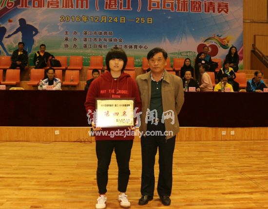 湛江市体育局副局长文进新为获得第四名的南宁市代表队颁奖。